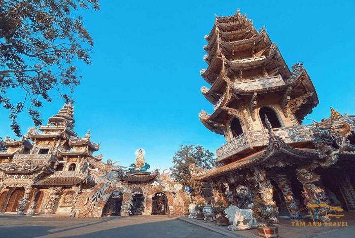- Chùa Linh Phước (Chùa Ve Chai): Đây là một trong những ngôi chùa nổi tiếng của Đà Lạt, là công trình kiến trúc khảm sành đặc sắc., đậm đà bản sắc Á Đông. Hằng năm thường xuyên đón tiếp khách du lịch đà lạt từ khắp nơi trong và ngoài nước đến lễ bái và tham quan công trình khảm sành độc đáo này.