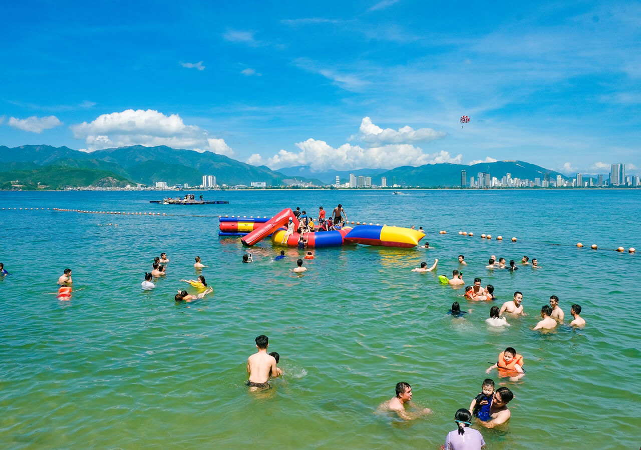 Quý khách nhận ghế chòi nghỉ ngơi, tự do chụp hình check in, tắm biển dưới làn nước trong xanh hoặc tham gia lặn biển, đi bộ dưới biển và các hoạt động vui chơi hấp dẫn như: cano, phao chuối, dù kéo bay… (chi phí trò chơi tự túc)